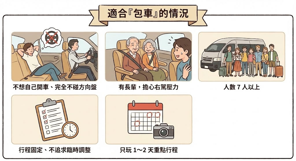 ✔️ 建議選包車的情況