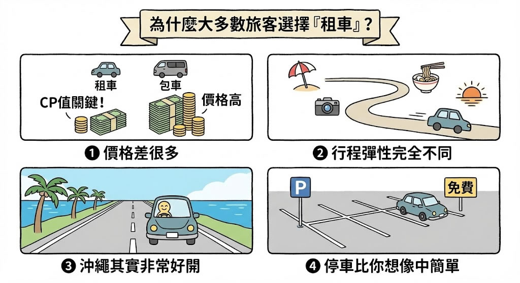 一張表先看懂:沖繩包車 vs 租車比較