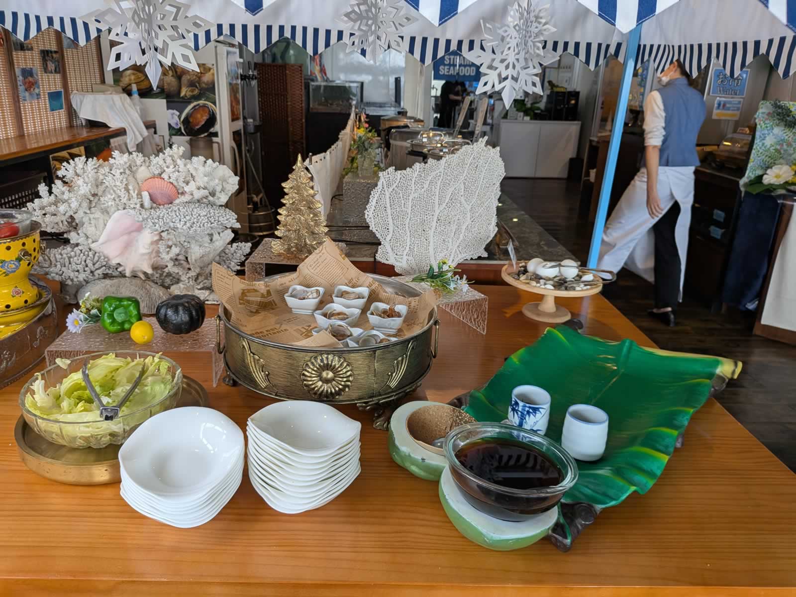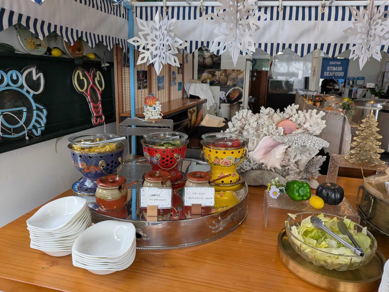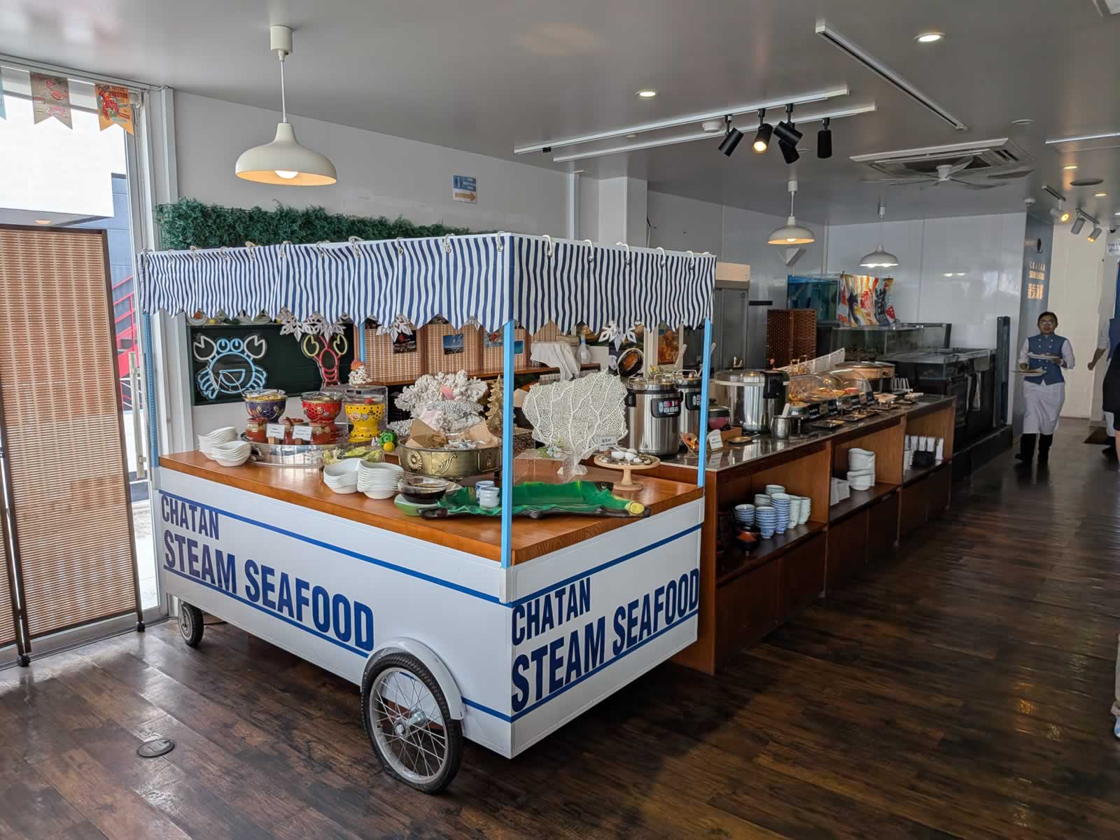 CHATAN STEAM SEAFOOD 餐廳空間寬敞,整體風格帶有 海洋度假風格,餐檯上擺滿各種海鮮與自助料理。