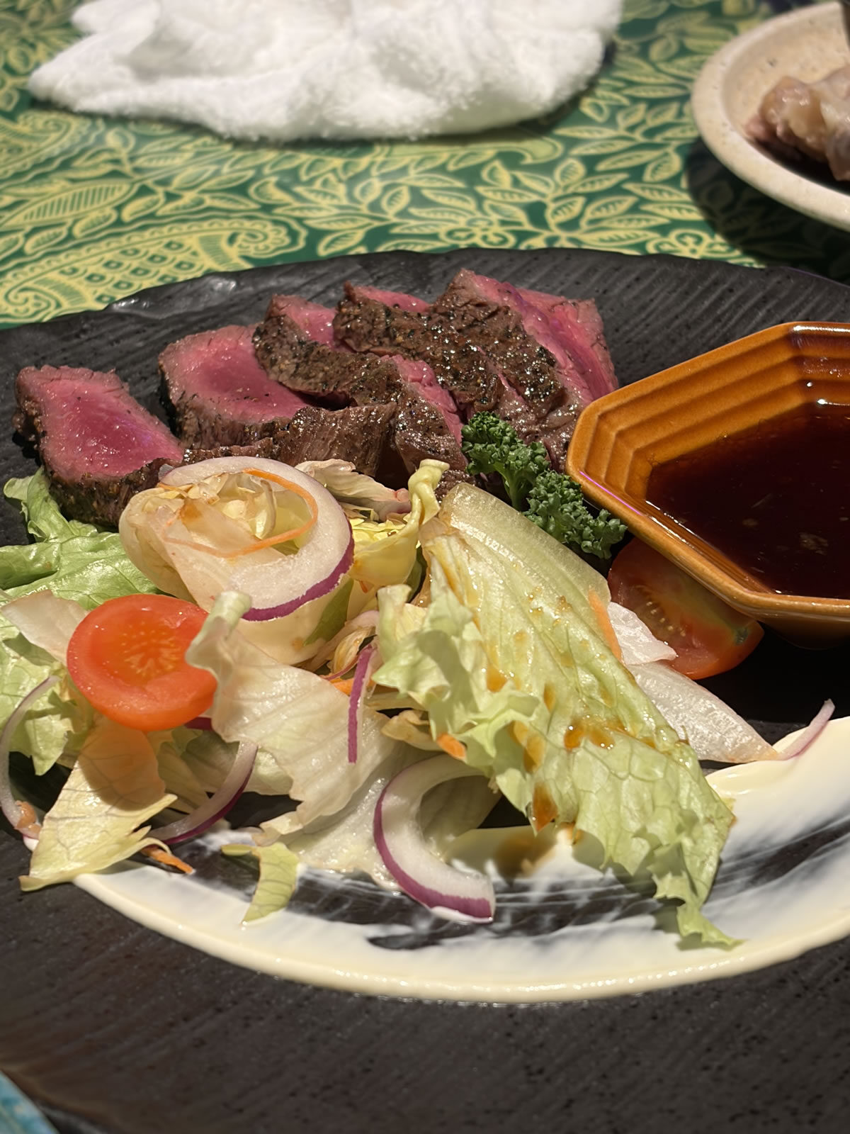 外層香煎、內部粉嫩的牛排,搭配特製醬汁與沙拉,非常適合搭配啤酒或紅酒。