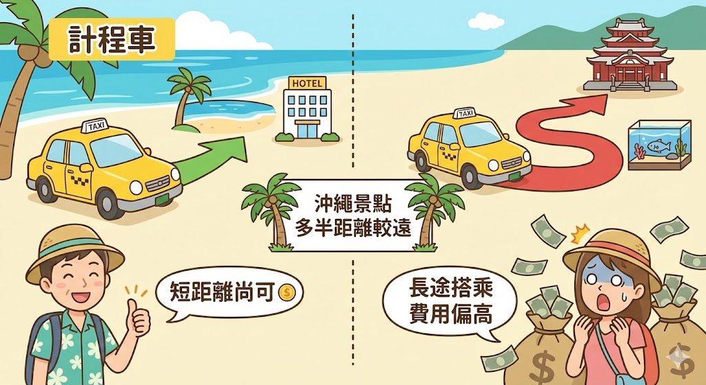 短距離尚可,但沖繩景點多半距離較遠,長途搭乘費用偏高。